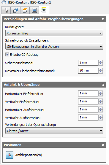 Der Radius des vertikalen Bogens zum Glätten der Einfahrbewegung, wenn diese zum Werkzeugweg selbst erfolgt