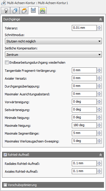 Bei Schlichtoperationen ist der Vorgabewert 0 mm/0 Zoll, d. h., es bleibt kein Material zurück.