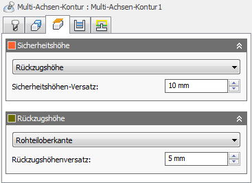 Der Rückzugshöhenversatz wird in Abhängigkeit von der in der oben stehenden Dropdown-Liste ausgewählten Rückzugshöhe angewendet.