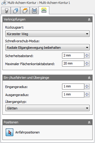 Einstellungen auf der Registerkarte Verbindungen und Anfahr-Wegfahrbewegungen