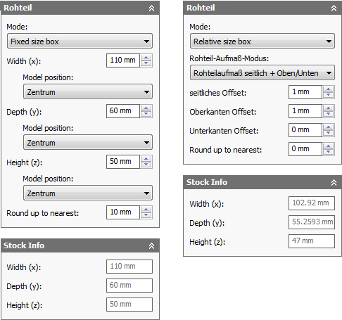 - Auf nächsten Wert runden: - Gibt das Rundungsinkrement für die Rohteilgröße an.