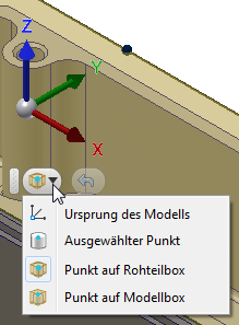 Punkt auf Rohteilbox - Wählen Sie einen Punkt auf der Rohteil-Begrenzungsbox als WKS-Ursprung.