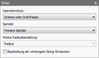 Das Bearbeitungssetup kann durch Angeben des Operationstyps beschrieben werden: Fräsen, Drehen oder Drehfräsen. Dieser Parameter wird dem Postprozessor zur Verfügung gestellt.