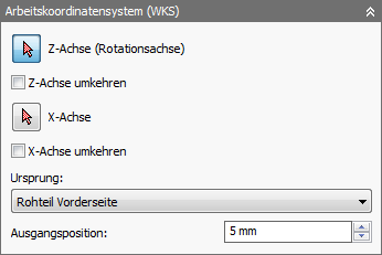 - Z-Achse (Rotationsachse) - Gibt die Achse an, um die sich das Bauteil dreht.