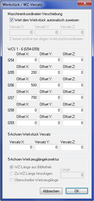 Achtung: Die Verwendung mehrerer Nullpunktverschiebungen im selben NC-Programm erfordert möglicherweise bei der Postprozessorkonfiguration besonderes Augenmerk auf Maschinenrückzüge und ähnliches mehr.
