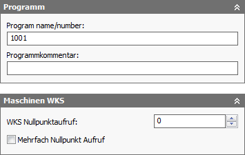 Auf der Registerkarte Postprozess können Postprozessing-Parameter wie Programmname, Programmnummer, Programmkommentar und Nullpunktverschiebung bereitgestellt werden.
