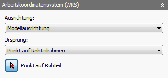 Das Arbeitskoordinatensystem (WKS) gibt das globale Koordinatensystem an, in dem der vom Postprozessor verarbeitete Werkzeugweg ausgegeben wird. Vorgabemäßig richtet sich das WKS nach der Modellausrichtung.