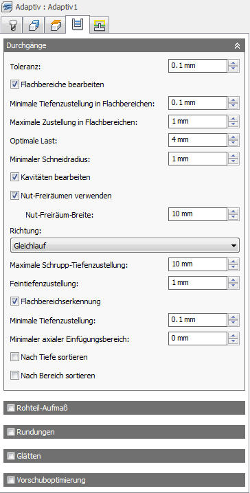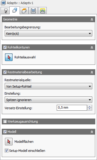 Wählt die Restmaterialanpassung zum Ignorieren bzw. Sicherstellen des Fräsens kleiner Überhöhungen aus.