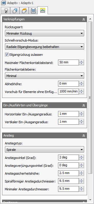 Der Radius des vertikalen Bogens zum Glätten der Einfahrbewegung, wenn diese zum Werkzeugweg selbst erfolgt