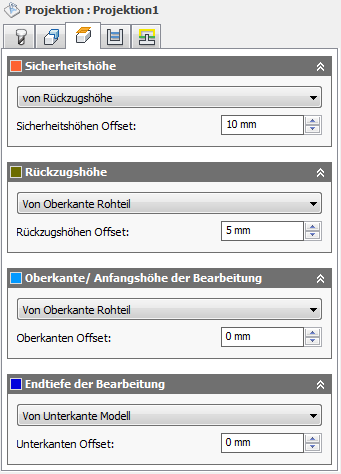 Der Sicherheitshöhen-Versatz wird in Abhängigkeit von der in der oben stehenden Dropdown-Liste ausgewählten Sicherheitshöhe angewendet.