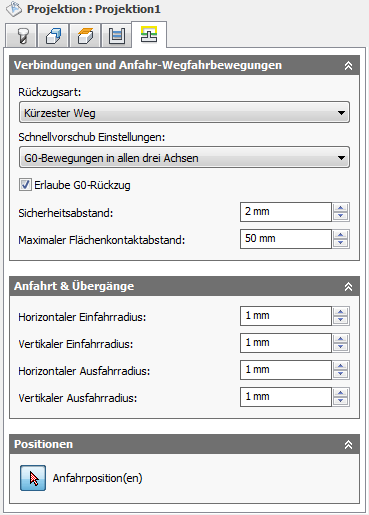 Der Radius des vertikalen Bogens zum Glätten der Einfahrbewegung, wenn diese zum Werkzeugweg selbst erfolgt