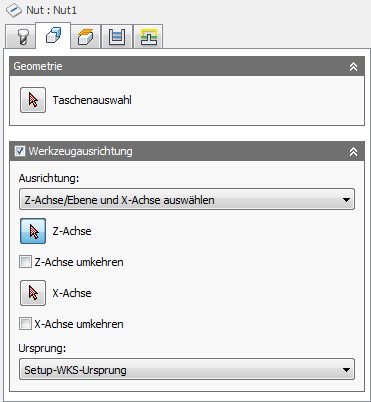 Gibt an, wie mithilfe einer Kombination aus Dreiergruppenausrichtungs- und Ursprungsoptionen die Werkzeugorientierung bestimmt wird.