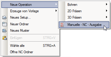 Zugriff auf Manuelle - NC - Ausgabe aus dem Kontextmenü Neue Operation heraus