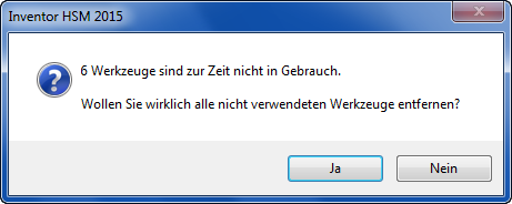 Aufforderung zum Entfernen nicht verwendeter Werkzeuge
