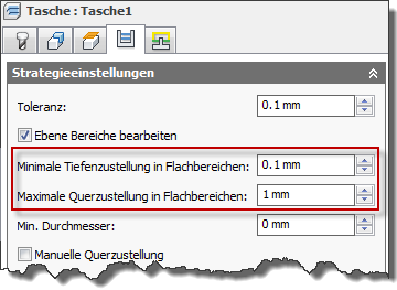 Bei Aktivierung des Kontrollkästchens Flache Bereiche bearbeiten werden die folgenden zwei Steuerungsparameter angezeigt: