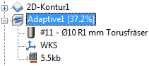 Sie können die Berechnung direkt über den CAM-Browser überwachen. Status und Fortschritt jeder neu berechneten Operation werden im Browser nach dem Operationsnamen in eckigen Klammern angezeigt.