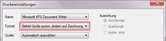 Anmerkung: Speichern Sie die Optionen (z. B. Beste Einpassung für die Zeichnungsgröße), um diese für zukünftige Ausdrucke wiederzuverwenden. Sie können diese Optionen auch in einer Vorlage festlegen und speichern.