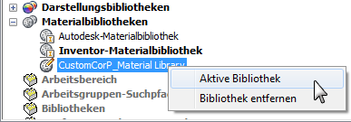 - Klicken Sie mit der rechten Maustaste auf den Knoten Materialbibliotheken, und wählen Sie Bibliothek hinzufügen aus.