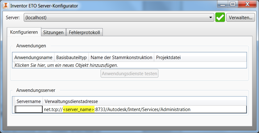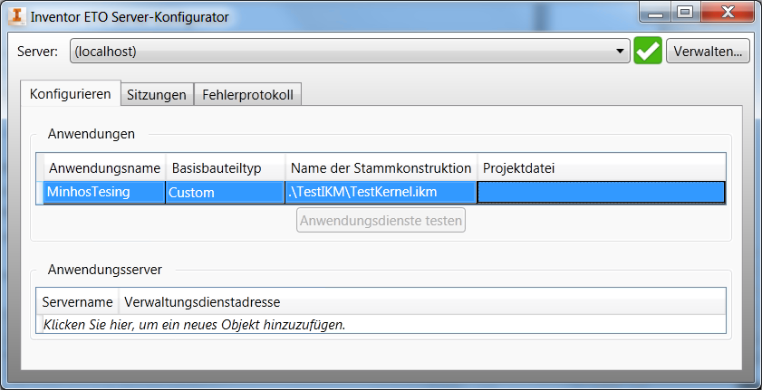 - Inventor-Server Erfordert eine Inventor-Projektdatei (*.ipj) für die Anwendung.