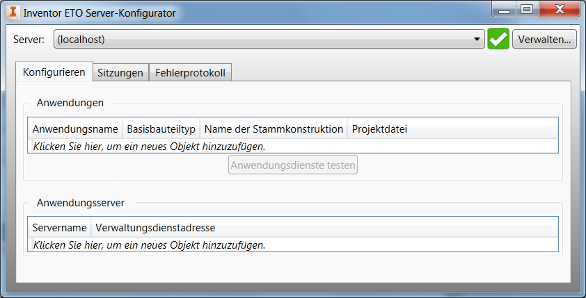 Um eine Anwendung hinzuzufügen, klicken Sie auf Klicken Sie hier, um ein neues Objekt hinzuzufügen. Anwendungen können nur lokal konfiguriert werden.