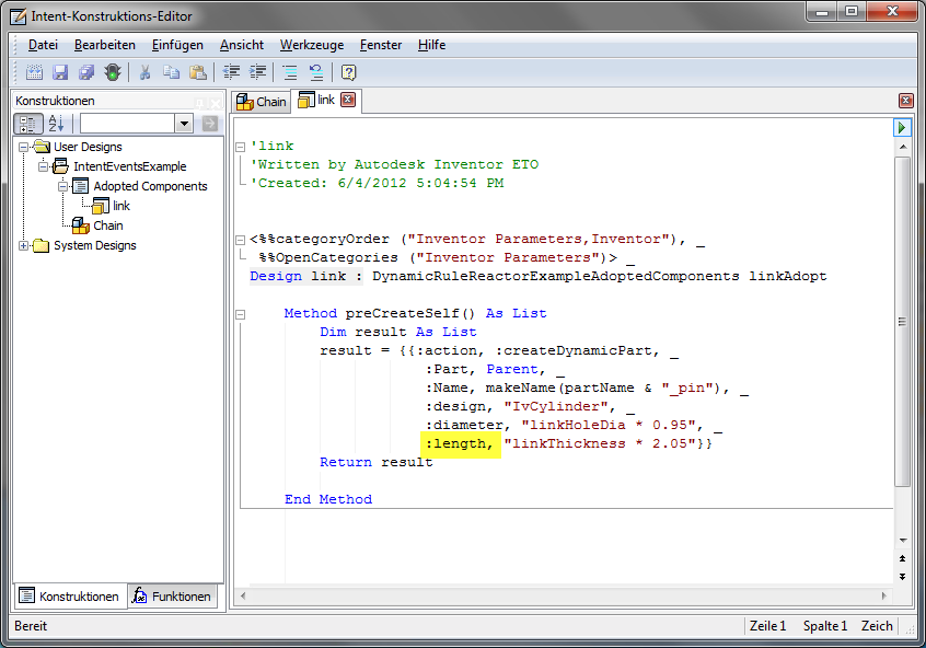Da der Stift ein normales Intent Bauteil ist, können wir uns die Parameter ansehen, um das Problem zu untersuchen.