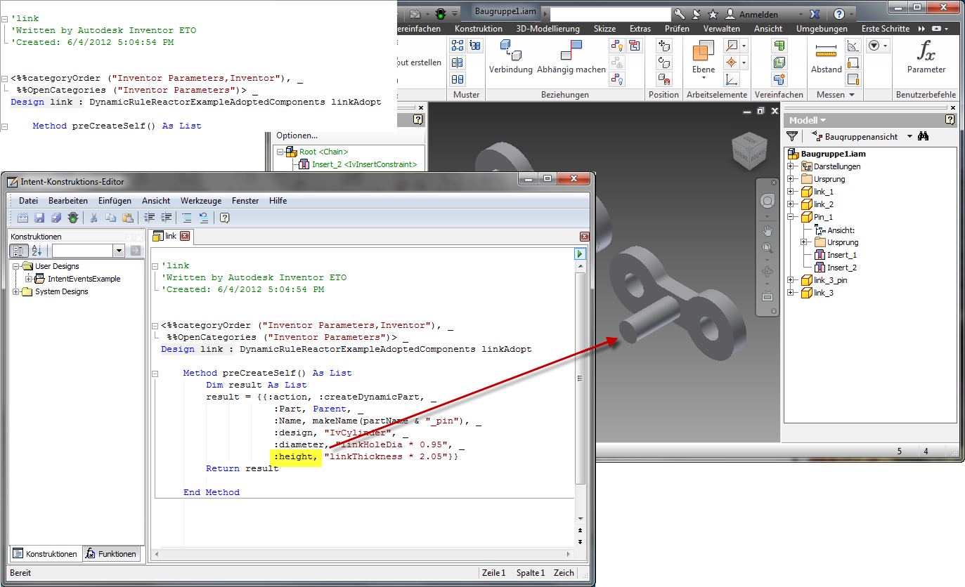 Prüfen Sie das Ereignis erneut, indem Sie ein weiteres Kettenglied mit demselben Verfahren wir zuvor hinzufügen. Dieses Mal erhält der Stift die richtige Formel für height.