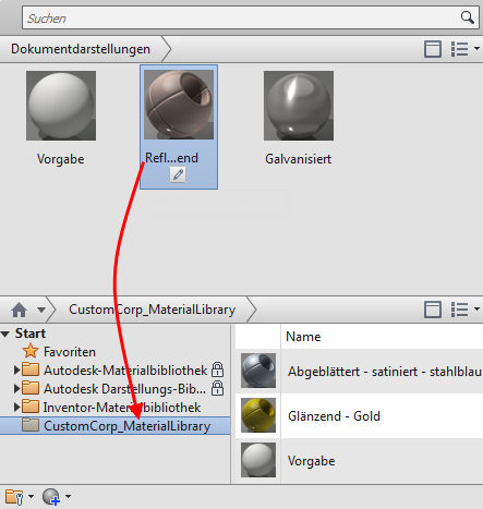 Sie erstellen eine benutzerdefinierte Bibliothek und fügen dieser aus allen Dokumenten, die eindeutige benutzerdefinierte Darstellungen enthalten, die Darstellungen hinzu, die Sie behalten möchten.