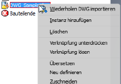 Sie können jetzt ohne weiteres die gleiche DWG-Datei erneut in die Bauteildatei einfügen: Klicken Sie mit der rechten Maustaste auf den Zeichnungsknoten im Browser, und wählen Sie die neue Kontextmenüoption Exemplar hinzufügen aus.