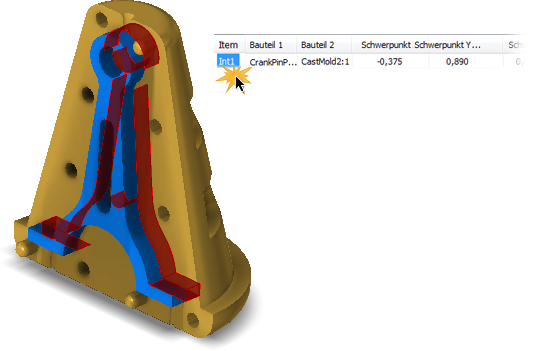 - Sie können nun eine Kollision in der Ansicht vergrößern. Wenn Kollisionen erkannt werden, erweitern Sie das Dialogfeld, und doppelklicken Sie auf einen Eintrag, um die Darstellung der Kollision zu vergrößern.