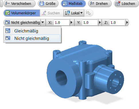 Der Befehl Fläche ersetzen unterstützt sowohl Oberflächen als auch die Flächen von Volumenkörpern als Ersatzflächen.