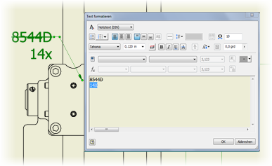 Beim Öffnen einer AutoCAD-DWG-Datei in Inventor ist importierter Text schreibgeschützt, behält aber die ursprüngliche Formatierung bei. Beim Öffnen einer Inventor-DWG-Datei in AutoCAD behält Text seine Formatierung bei.