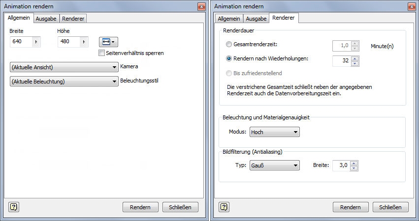 Ausgangsebene und Schatteneffekt im Renderergebnis