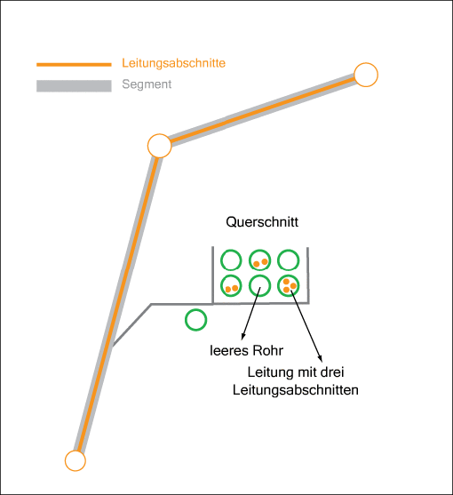 In Elektro NA werden Trassen und Leitungsabschnitte zusammen mit der Geometrie gespeichert, aber Rohre sind Attributobjektklassen ohne Geometrie. Sie können mit Querschnitten alle Objekte in der Karte darstellen.