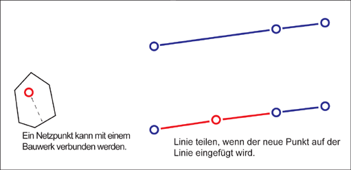 Der Arbeitsablauf Netzpunkterstellung teilt die vorhandenen Linien, um die Richtigkeit der Topologie zu gewährleisten.