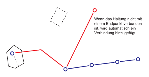 - Wenn Sie eine Haltung mit einem Start- oder Endpunkt erstellen, der nicht mit einem Netzpunkt verbunden ist, wird eine Verbindung erstellt, siehe Objektregel: Anfangs- und Endknoten erstellen.