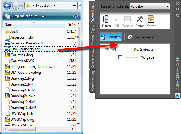 Ziehen Sie die Stadtgrenzendatei in die Darstellungsverwaltung, und legen Sie sie dort ab.