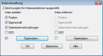 Die Indizes werden erstellt. Wiederholen Sie diese Schritte regelmäßig bei der Arbeit mit Ihren Zeichnungen, um die Indizes zu aktualisieren bzw. neu zu erstellen.
