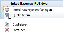 - Um einen Filter auf die Quelldaten anzuwenden, klicken Sie mit der rechten Maustaste auf die Datenquelle, und klicken Sie dann auf Quelle filtern.