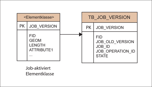 In der Tabelle TB_JOB_VERSION wird der gesamte Verlauf jedes Objekts gespeichert. Die Objekttabelle verfügt über ein für Jobs relevantes Attribut: JOB_VERSION. Die Tabelle TB_JOB_VERSION steuert zudem, welche Objekte angezeigt werden.