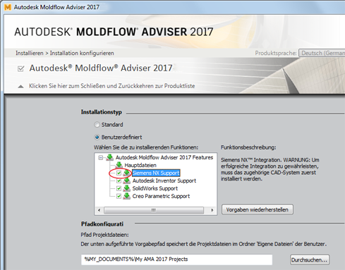 Siemens NX10 verfügt nun über die Schnellstartfunktion, mit der Sie Autodesk Moldflow Adviser in Ihrer CAD-Anwendung starten können.