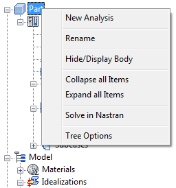 Klicken Sie mit der rechten Maustaste auf Teil/Baugruppe. Das Menü zeigt die folgenden wichtigsten Optionen an:
