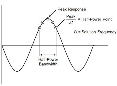 4. The frequency spread can be used also to define the half-power bandwidth. The half-power bandwidth is given by where is the damping ratio. Therefore, if FSPD is specified equal to the damping ratio for the mode, NFM specifies the number of solution frequencies within the half-power bandwidth. See Figure 1 for the definition of half-power bandwidth.