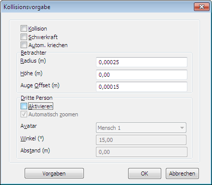 - Wählen Sie im Dialogfeld Kollisionsvorgabe die Vorgaben, mit denen Sie Autodesk Navisworks initialisieren möchten.