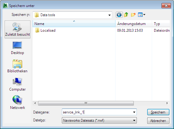 Gehen Sie im Dialogfeld Speichern unter zum gewünschten Ordner, und geben Sie einen Namen für die DataTools-Datei ein. Sie können auch den Namen einer bestehenden Datei auswählen und diese durch die neue Konfiguration überschreiben.