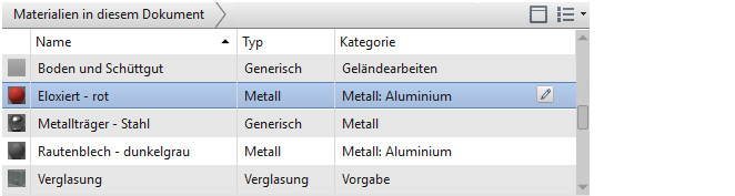 Zeigt die mit der geöffneten Datei gespeicherten Materialien an.