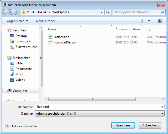 Geben Sie im Dialogfeld Aktuellen Arbeitsbereich speichern einen Namen für den neuen Arbeitsbereich ein. Sie können auch den Namen eines vorhandenen Arbeitsbereichs auswählen, um ihn mit der geänderten Konfiguration zu überschreiben.