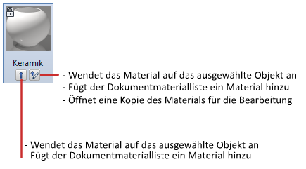 Zum Bearbeiten der Einstellungen können Sie auf ein Materialmuster doppelklicken oder das Kontextmenü verwenden.
