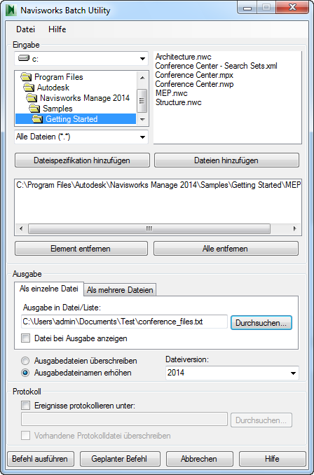 - Klicken Sie im Dialogfeld Autodesk Navisworks Batch Utility auf die Schaltfläche Befehl ausführen.