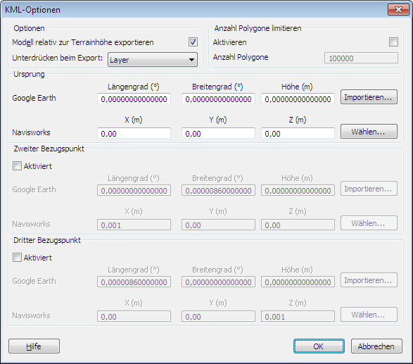 Google Earth-Referenzpunkte ebenfalls relativ zur Meereshöhe gemessen werden. Beim Positionieren eines Modells relativ zur Erdoberfläche muss die Höhe der