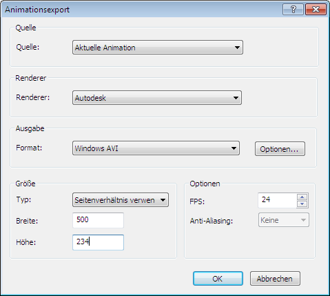 So exportieren Sie eine Animation in eine AVI-Datei oder eine Sequenz von Bilddateien